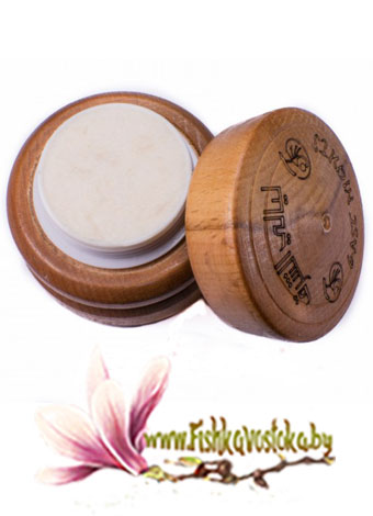 Состав: масла: бензольная смола, смола драконника, древесина дерева каламбак, листьев джемсии, корней костуса, семян ангелики, корней ветивера, цветов узумбарской фиалки, перца кубеба, нерафинированные твердые масла: какао, косточек манго, семян вечерней примулы, карите, пчелиный желтый воск.